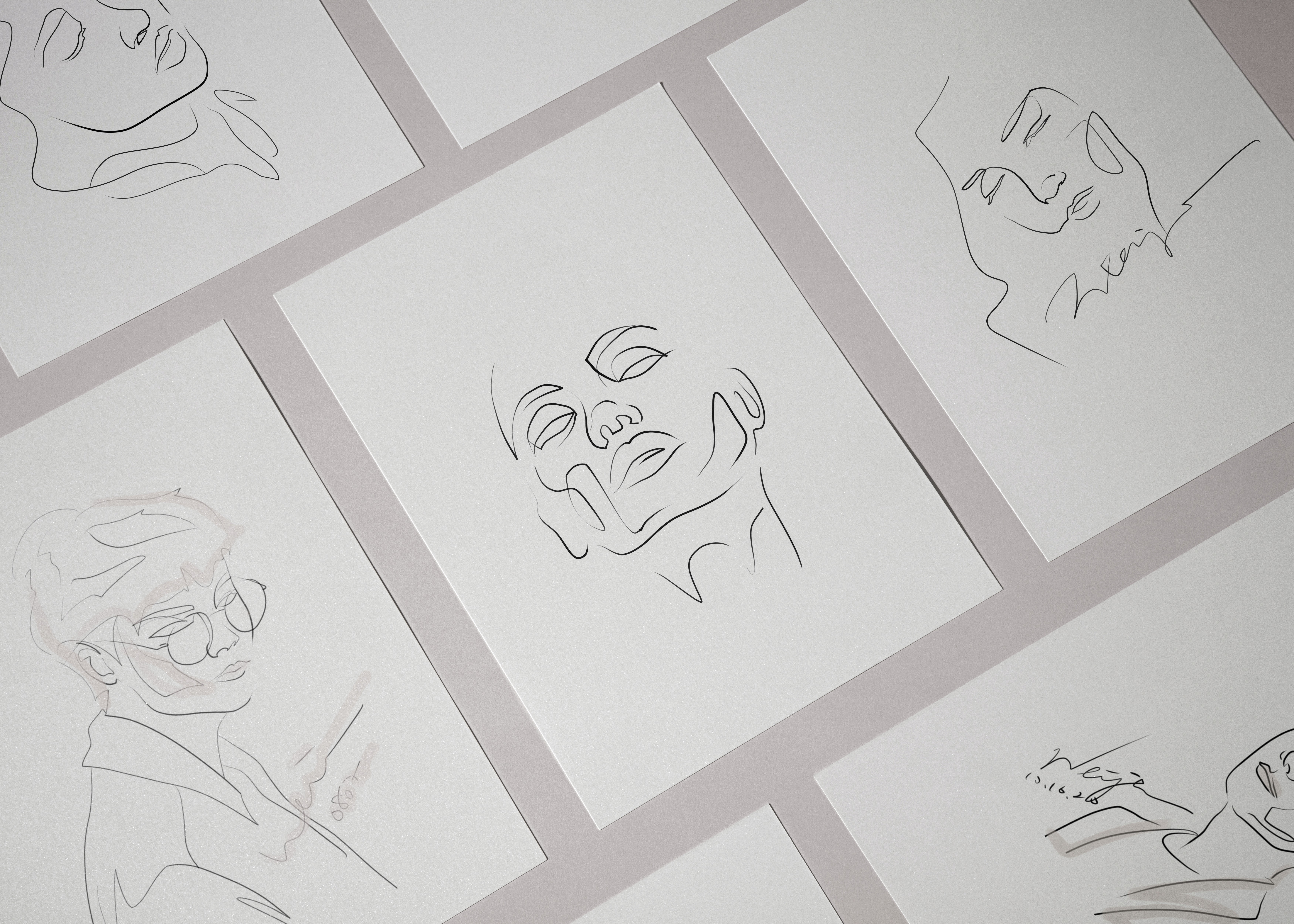 Ultimately, I settled on creating minimalist line art for the brand, as it conveyed a sense of modernity and aesthetic appeal that resonated with customers. After completing the business design project, I created these portraits for my personal art portfolio. Immersing myself in the digital world of art proved to be a healing experience.